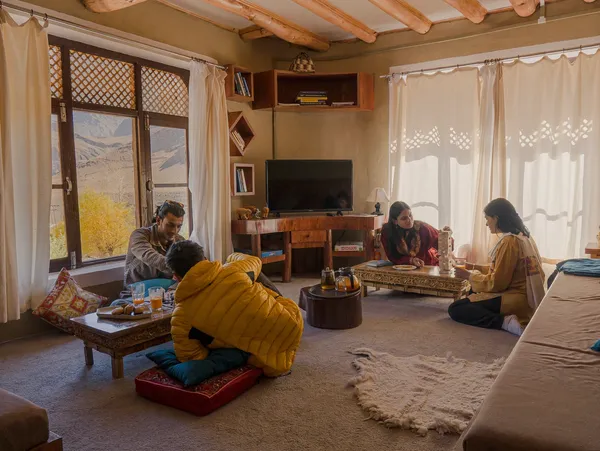 Hotel Chospa, located in the coveted Old Leh Road is an enchanting abode that rises amidst the dynamic city center, curated for discerning explorers and for those traveling in luxury. Built in a traditional Ladakhi style of construction, Hotel Chospa has been molded using sustainable raw materials and ethically sourced local wood that protect the hotel from the elements while also leaving behind minimal carbon footprint.
